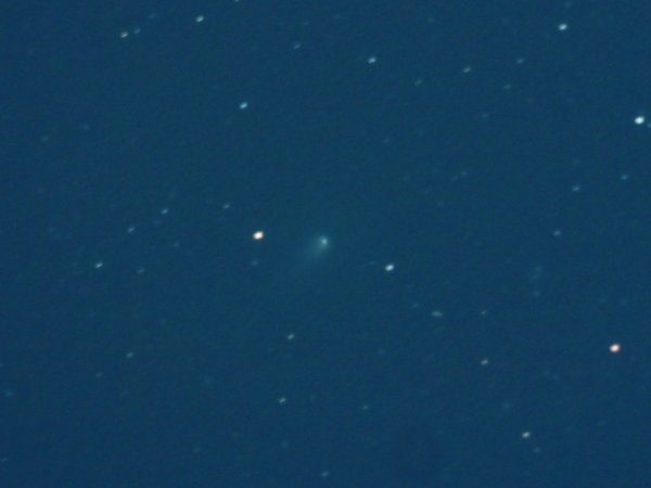 撮影日時 : 2003年12月16日 20時15分〜24分 望遠鏡 : 口径200mm x 焦点距離 800mm 直焦点 カメラ : Canonの一眼レフデジカメ EOS 10D 露出時間 : 60秒露出の8画像を彗星の位置を合わせてコンポジット(加算平均) 撮影条件 : 感度 ISO 800相当、ホワイトバランス:オート フィルタ : TOKAI NRF-Jフィルタ使用 画像サイズ : 3072x2048pixelsを1/2ソフトビニング後 トリミング 撮影場所 : 横浜の自宅 |