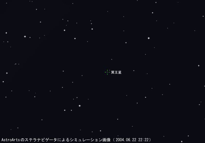 AstroArtsのステラナビゲータによるシミュレーション画像 中央のマークされた星が冥王星です |