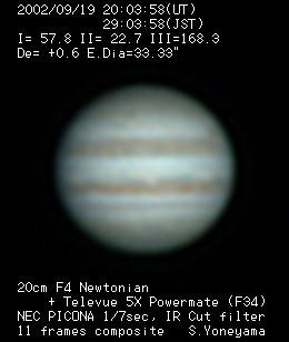 2002年9月19日 シーイング:3、透明度:5![]() |