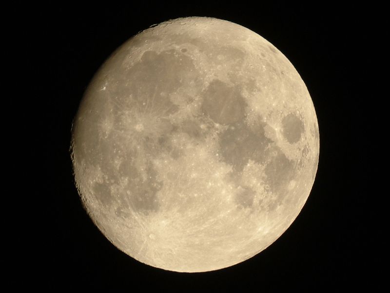 十三夜の月(月齢12.4) 1.撮影日時 : 2003年10月08日 21時38分 2.望遠鏡 : 口径200mm x 焦点距離 800mm 直焦点 F4 3.カメラ : 一眼レフデジカメ FujiFilm S2Pro 4.露出時間 : 1/500秒 ISO200 5.撮影場所 : 自宅のベランダ 6.画像処理 : 4256x2848ピクセルの画像をトリミング&リサイズ、 レベル調整&アンシャープマスク処理