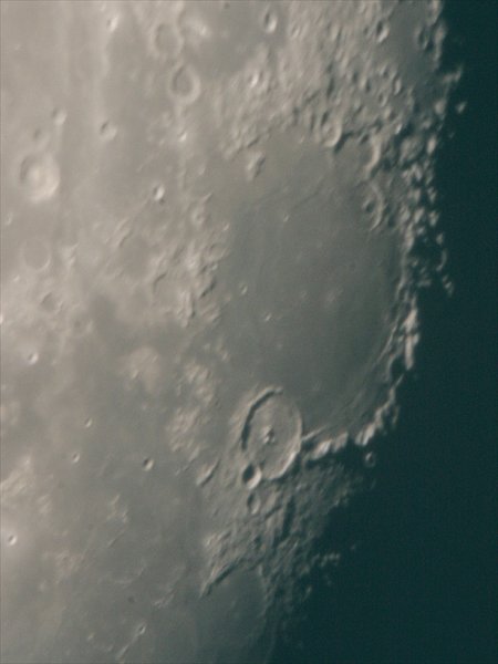| 月面(月齢10.9)しめりの海&ガッサンディ 撮影日時 : 2004年11月23日 21時11分 望遠鏡 : Vixen R200SS D200mm F4、Televue 5X Powermate F28 カメラ : Canonの一眼レフデジカメ EOS 10D 露出時間 : 1/20秒 撮影条件 : 感度 ISO 400相当、ホワイトバランス:太陽 画像サイズ : 3072x2048pixelsをリサイズ&トリミング 撮影場所 : 自宅のベランダ 備考 : しめりの海の下端のクレータがガッサンディです |