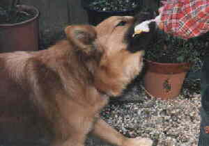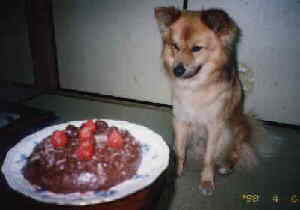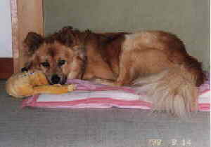 雑種の雄で、特徴は口の周りが黒いのと、自慢の