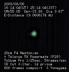 V€― PDBeϊ F 2003N86ϊ 2513ͺ04b`15ͺ04b QD]Ύ@ F ϋa200mm x Ε_£ 800mm @@@@@@@@Televue 5X Powermate, ¬Fl 28 RDJ@ F PhilipsΠΜWebCamgToUcam Proh(PCVC740Kj, @@@@@@@@IR Cut filter, 1d prisum SDIoΤ F 1/25b, 5frames/sec, 600frames Compsite TDBeκ F ©ξx_