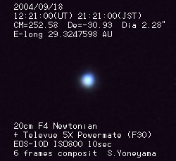 V€― PDBeϊ F 2004N918ϊ 2116ͺ20b`26ͺ10b QD]Ύ@ F ϋa200mm x Ε_£ 800mm, Televue 5X Powermate, @@@@@@@@¬Fl 30i¬Ε_£ 6000mmj RDJ@ F Canon EOS-10D ISO800 WB Ύzυ SDIoΤ F 10b, 6frames Compsite TDBeκ F ©ξx_