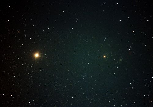 火星とアンタレス(画像の上にマウスを置くと星の名前が表示されます) 1.撮影日時 : 2001年7月20日 21時20分 2.カメラ : MINOLTA SRT101 f135mm F2.8 開放 3.フイルム : フジフイルム Super G Ace 800 4.露出時間 : 10分 5.撮影場所 : 三浦市三崎町六合(三浦半島の先端地域)