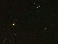 ![]() おうし座に集合した月・木星。土星 撮影日時 : 2000年9月19日 04時07分 カメラ : f6mm(35mmカメラ換算の焦点距離 40mm) 露出時間 : F3.2 8秒 撮影場所 : 自宅前 |
