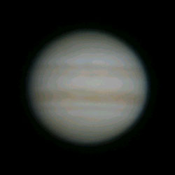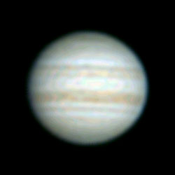 ![]() 木星 撮影日時:2000年08月30日 04時14分(JST) 望遠鏡 :口径200mm 焦点距離800mm 5mm接眼レンズ カメラレンズ f48mm 合成焦点距離 7,680mm 露出時間:1/2秒 F3.2 7画像コンポジット |