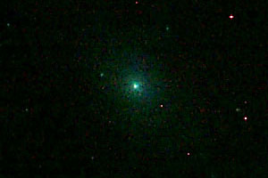 ![]() リニアー彗星(C/2001-A2) 撮影日時 : 2001年07月13日 23時13分〜34分 望遠鏡 : 口径200mm x 焦点距離 800mm 20mm接眼レンズ カメラ : 6mm 合成焦点距離 240mm 露出時間 : F3.2 48秒2画像+64秒2画像の計4画像をコンポジット 撮影場所 : 自宅のベランダ |