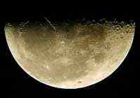![]() 下弦の月 撮影日時 : 2000年9月21日 03時45分 望遠鏡 : 口径200mm x 焦点距離 800mm 20mm接眼レンズ カメラ : f6mm 合成焦点距離 240mm 露出時間 : F3.2 1/60秒 撮影場所 : 自宅前 |