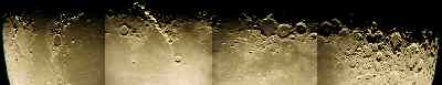 ![]() 月の拡大画像(下弦の月の欠け際) 撮影日時 : 2000年9月21日 03時52分〜53分 望遠鏡 : 口径200mm x 焦点距離 800mm 20mm接眼レンズ カメラ : f48mm 合成焦点距離 1,920mm 露出時間 : F3.2 1/5〜1/13秒 撮影場所 : 自宅前 |