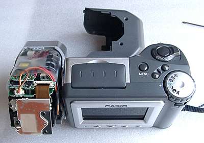 QV-8000SXは、レンズ部分がデジカメ本体から分離しているので、CCDの取り出しが