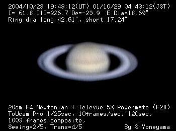 2004年10月28日(UT) シーイング:2、透明度:4 ![]() |