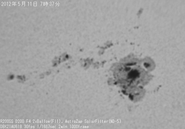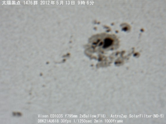 ΎzSΜΜBef[^ Beϊ F 2012N513ϊ 853ͺ ]Ύ@ F Vixen ED103S f795mm @@@@@@Canon Extender EF 1.4xϊKf 1113mm(F10.8) tB^ F AstroZap Solar Filter(ND5) J@ F EOS KissX2 ISO200 1/1000b ζTCY F 4272x2848pixelsπ1/3TCYg~O Beκ F ©ξΜx_ΙΔΎz υ@l@ F |