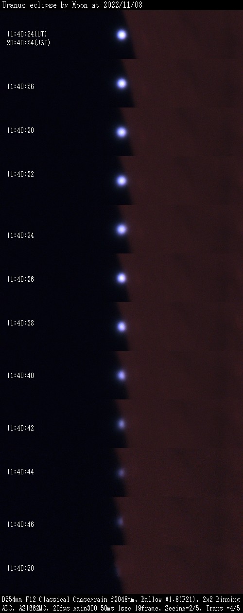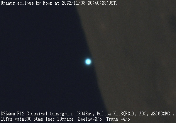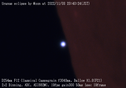 1.口径250oのカセグレン反射望遠鏡で撮影した天王星食直前の画像