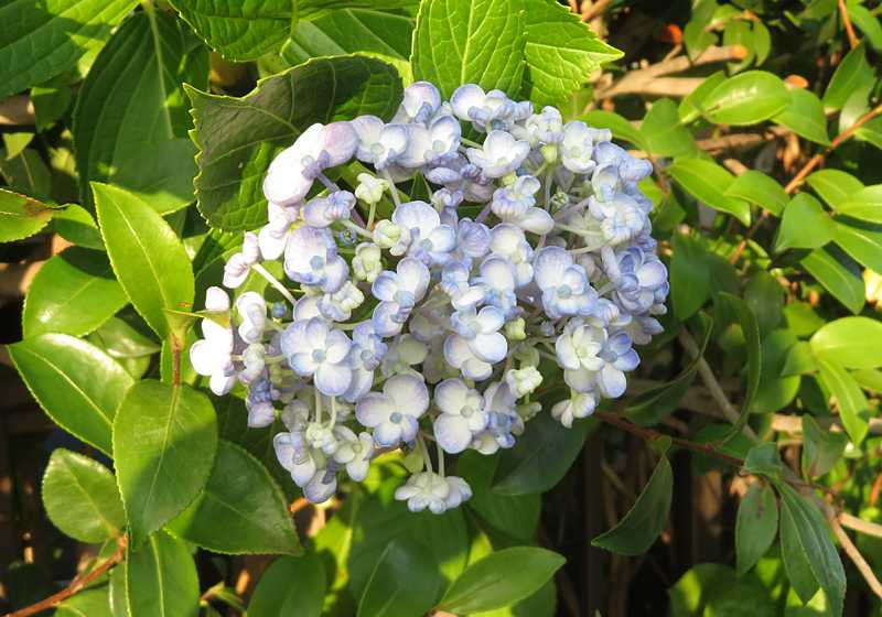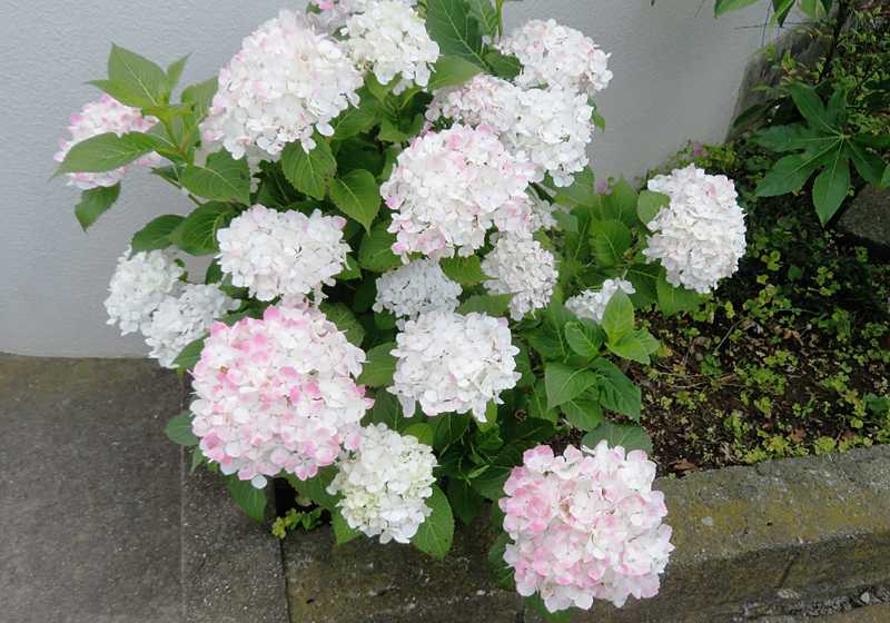今日の画像は、色が変わるアジサイです。このアジサイ、装飾花が咲き始めは真っ白ですが、徐々に赤みを帯び、最後は赤に変わります。画像は、開花から一週間過ぎた頃です。その後の様子は後日紹介します。