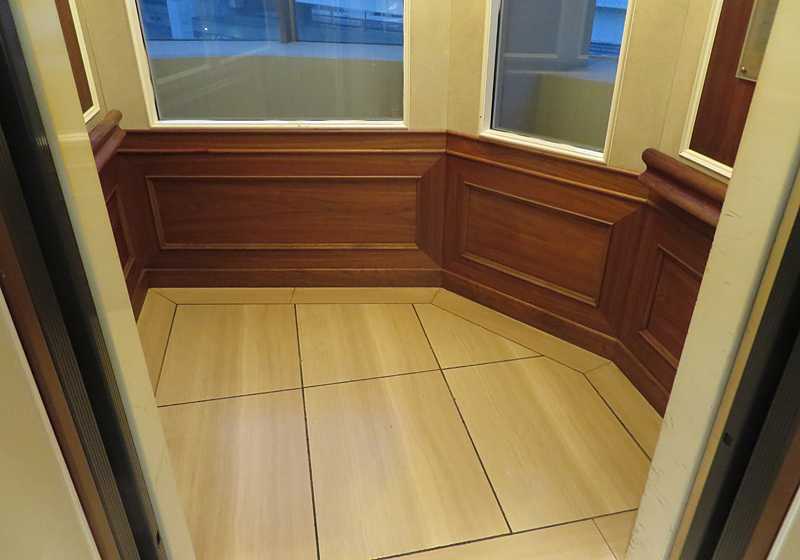 今日の画像は、昨夜の歓送迎会の会場となったビルのエレベーターです。四角ではなく五角形のエレベーター、面白かったので撮影しました。エレベーターは2基並んでおり、それぞれ左右対称形なので、角がある半円形の出窓の様な構造内に2基のエレベーターが設置されていると思われます。