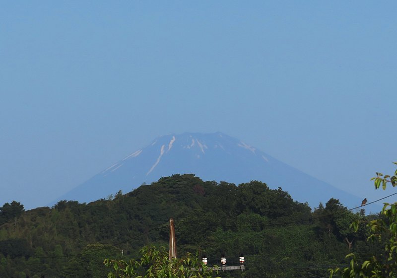 今日の画像は、一週間ぶりに見えた今朝の富士山です。空は澄んでいたけど、低空の透明度はそれほど良くなく、富士山は少し霞んでいたけど、僅かな残雪が残っているだけの夏の富士山が見えていました。
