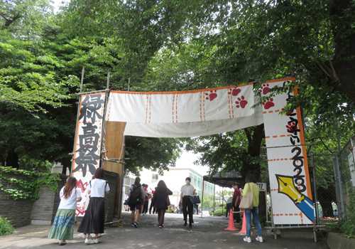 今日の画像は、その文化祭の入場門です。通学していた頃と同じ様に、正門周辺は木々に覆われていました。