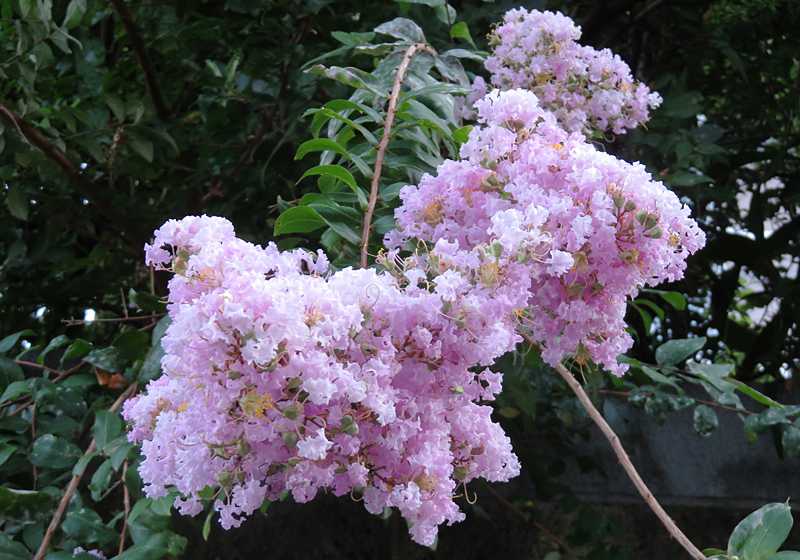 今日の画像は、淡いピンクの百日紅です。かなり白みが強いので、多分、赤と白の交配種かも。通常の百日紅より花の密度が高めです。