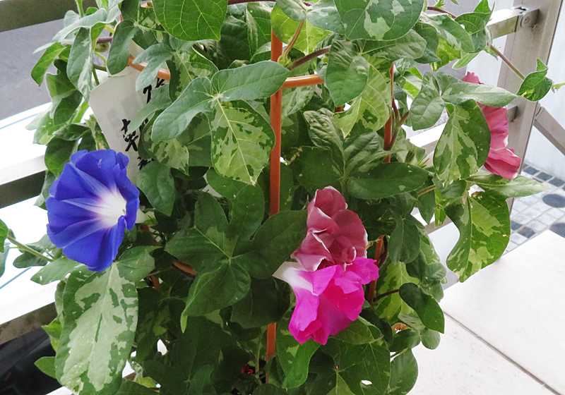 今日の画像は、我が家の朝顔です。先週、妻が近くの公園で買ってきた小さな鉢の朝顔が花を咲かせています。まだ小さな花ですが、これからが楽しみです。