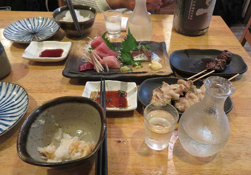 今日の画像は、今夜の飲み会のテーブルです。つまみは焼き鳥がメインですが、刺身も美味しかったです。それより、日本各地から取り寄せた純米吟醸や大吟醸の生酒を好みで飲めるのが最高です。店の人が日本酒に詳しく、甘口・辛口など客の好みに合わせて、選んでくれるのが嬉しいです。