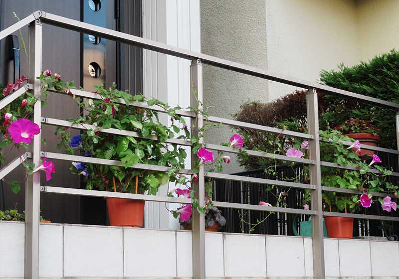 今日の画像は、我が家の朝顔です。7日の画像で紹介した二鉢の朝顔が、玄関前の手摺一杯に広がりました。毎朝、数多くの花を咲かせています。