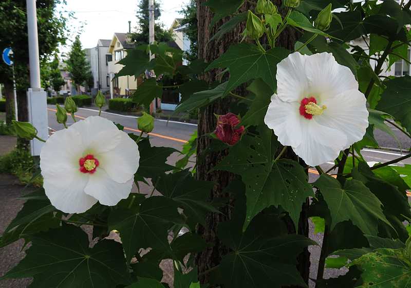 今日の画像は、白い芙蓉の花です。芙蓉の花はピンクと白だけです。他の花の様に黄色や赤などがありません。品種改良が難しいのでしょうか。