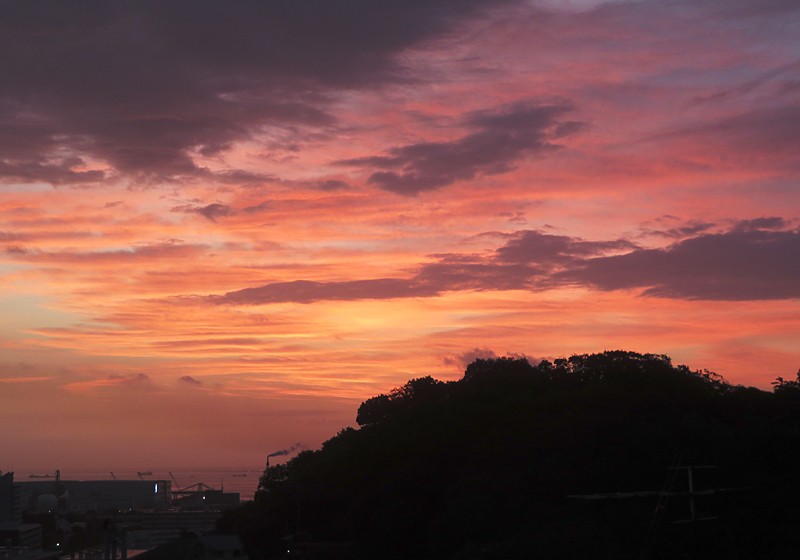 今日の画像は、今朝の朝焼けです。今朝は低空の雲が広がっており、日の出前の陽光がその雲を赤く染めていました。朝焼けは天気が崩れる前兆と言われているけど、直ぐには崩れない天候の様です。