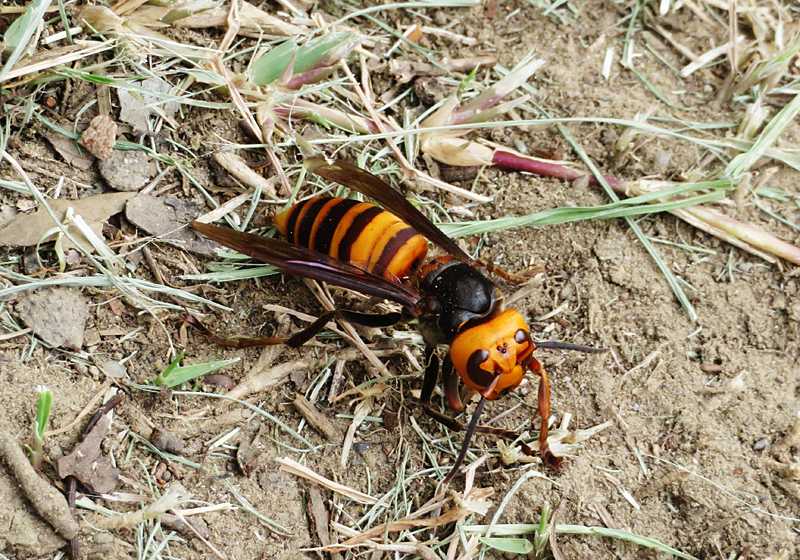 今日の画像は、スズメバチです。この画像も一昨日の日曜日に近くの公園で撮影しました。涼しくなった影響か、別の理由かは分かりませんが、このスズメバチは飛べなくなり、地面を這っていました。近くから撮影しようと後ろから近付いたら、向きを変えて私の方に頭を向けました。疲れていても攻撃態勢を取るだけの力は残っている様なので、急いで撮影し、直ぐにその場から離れました。