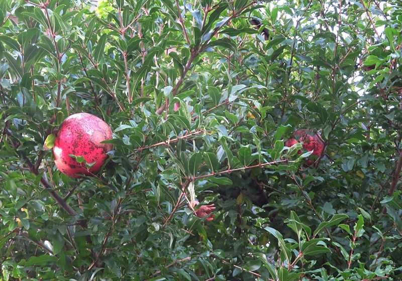 今日の画像は、今朝撮影したザクロの実です。かなり赤く色付いており、割れるのも近い感じです。