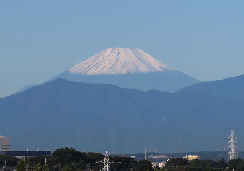 今日の画像は、富士山の初冠雪です。富士山の初冠雪は多分4日の日ですが、当日は天気が悪く確認できず、初冠雪の発表は昨日5日でした。今日の画像は、今朝出勤直後の勤務校から撮影しました。