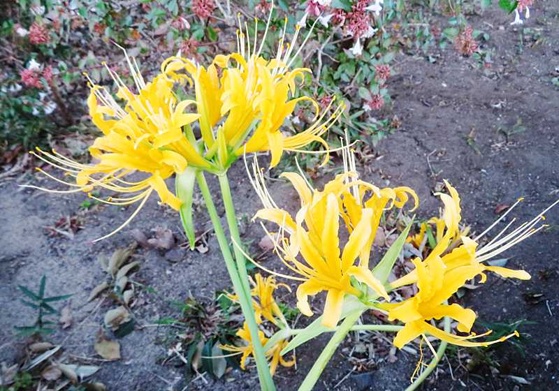 今日の画像は、ショウキズイセンです。彼岸花に似ているけど黄色なので、多分、ショウキズイセンでしょう。今まで咲いていなかった場所に1本だけ咲いていたので、野鳥が運んできた種から育ったのかも。