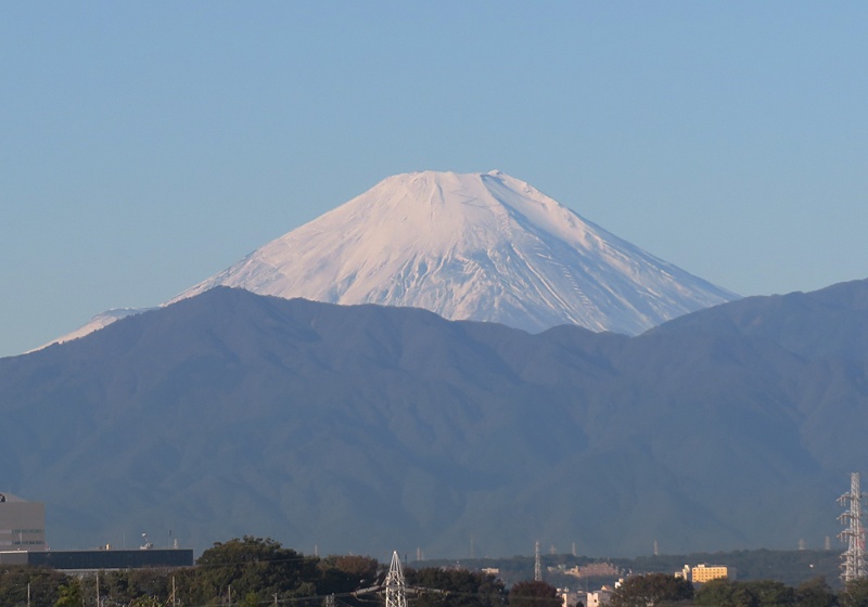 今日の画像は今朝の富士山です。先週の金曜日に降った雪で、五合目より上は真っ白に冠雪しており、朝日を受けて輝いていました。