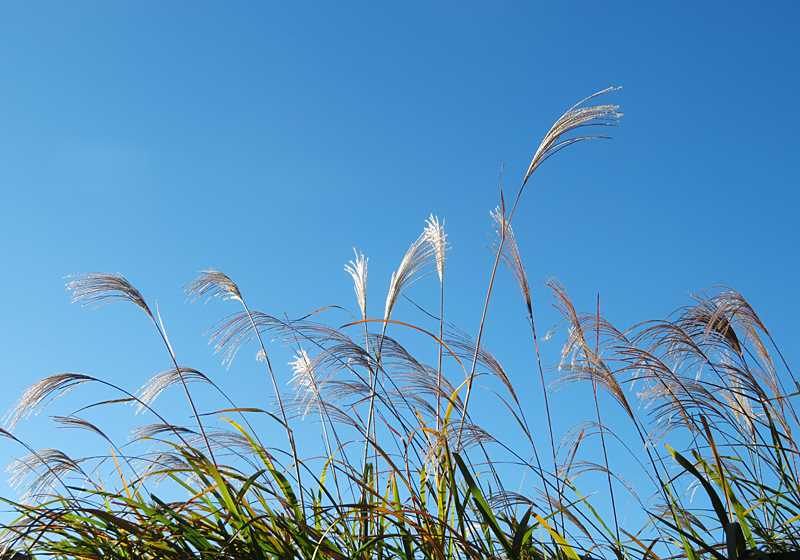今日の画像は、ススキの穂です。ご近所の庭のススキが陽射しを受けて輝いていました。