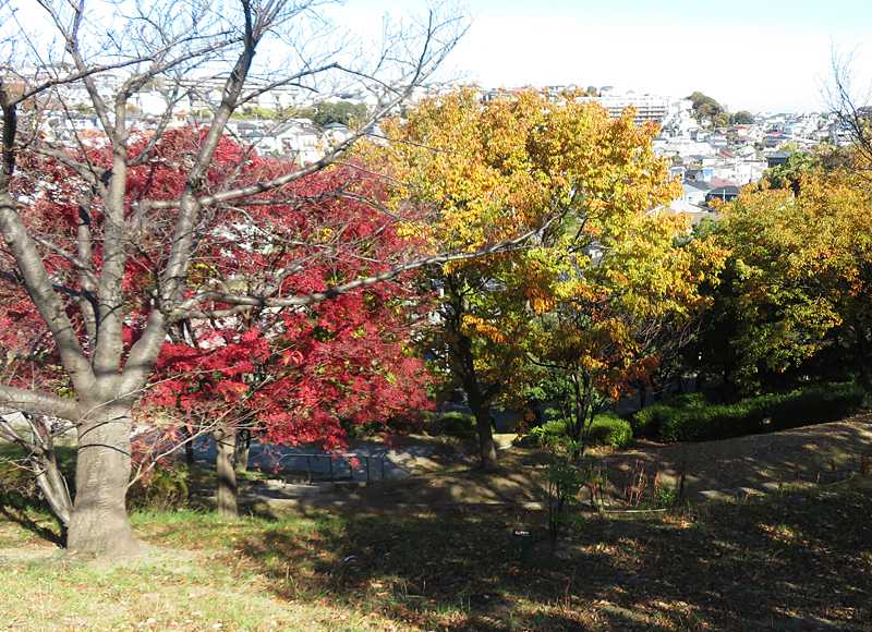 今日の画像は、近くの公園の紅葉と黄葉です。公園には、色々な種類の樹木が植えられており、葉が散った桜、紅葉したモミジ、散る前に黄葉した落葉樹、さらには常緑樹等があり、この季節は結構カラフルです。