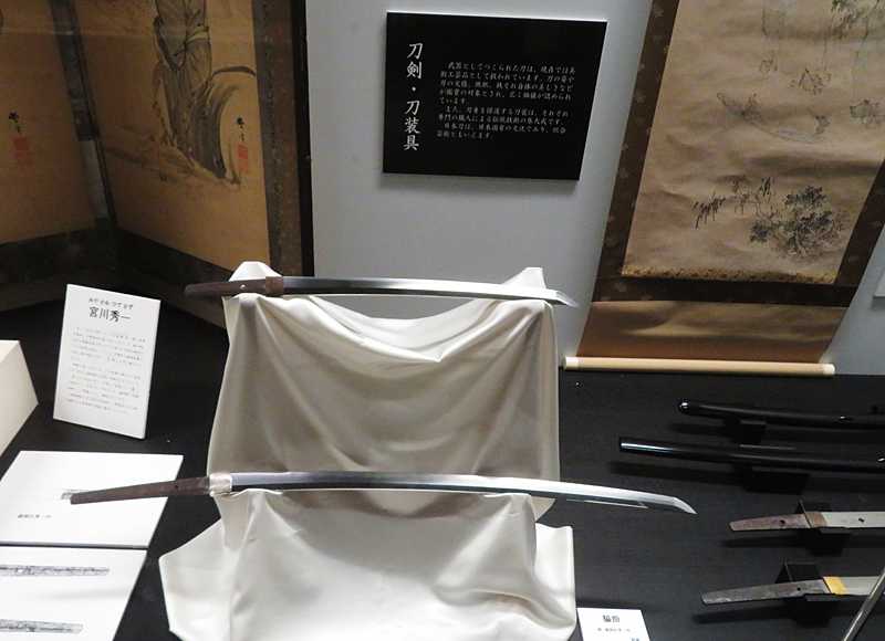 今日の画像は、その展示の一部の刀剣類です。それ以外にも、縄文時代の竪穴住居の様子、武家屋敷の様子などを紹介します。