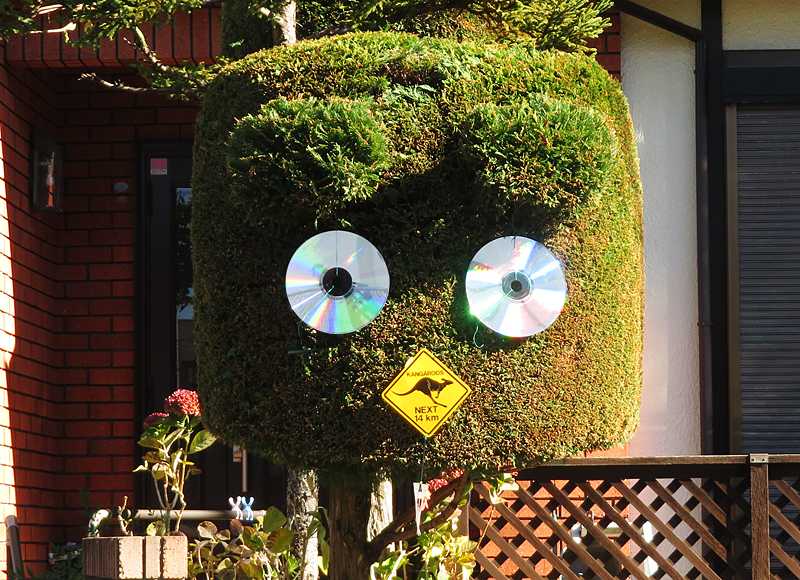 今日の画像は、隣町のお宅の庭木です。そのお宅は、T字路の突き当りにあるので、そのお宅に向かって歩くと否応なく目に入って来ます。何度見ても面白いです。