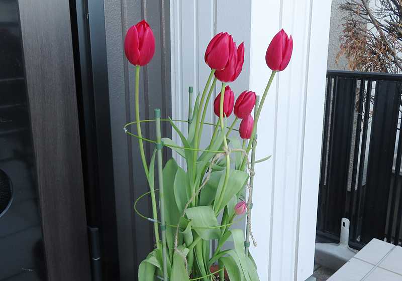 今日の画像は、我が家のチューリップです。妻が近くの公園で買ってきたアイスチューリップが開花しました。かなり茎が長いので、風で倒れない様にしました。
