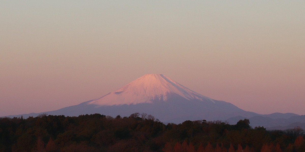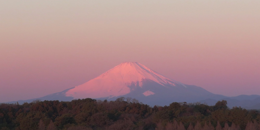 今日の画像は、元日の富士山です。昨朝、初日の出を撮影後、歩いて2分程の西が開けた場所に移動して撮影しました。夜明直後の富士山は朝焼けで赤く染まっていました。昨日の日中に撮影した富士山の画像も紹介します。青空の下で真っ白に輝く富士山の方が清々しく感じられます。