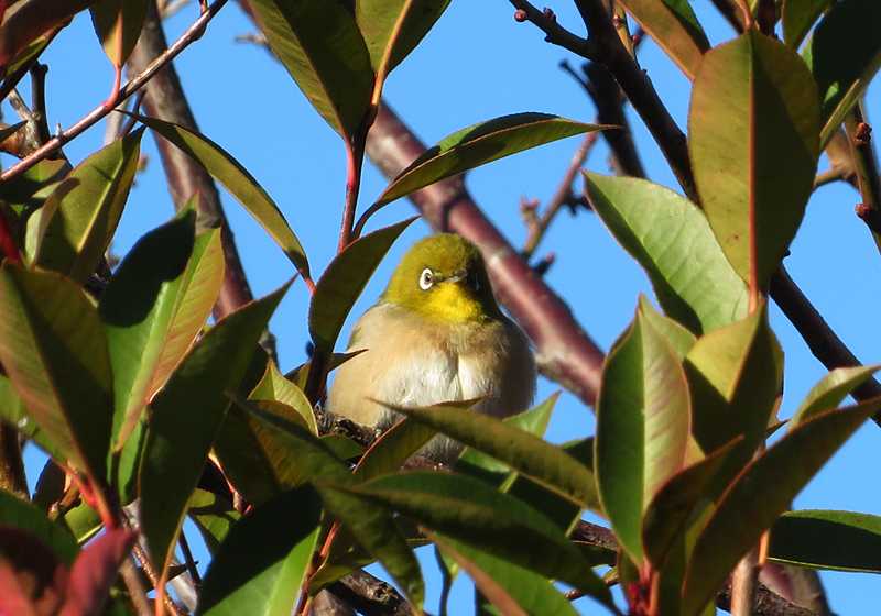 今日の画像は、メジロです。今日の散歩中、目の前の木にメジロが飛んで来たので、撮影できました。寒いのでメジロも羽を膨らませて丸くなっていました。