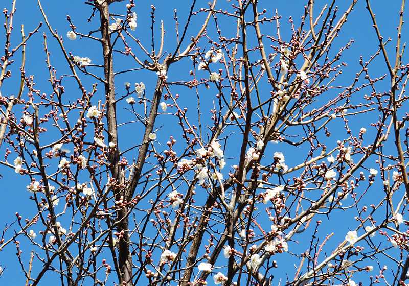 今日の画像は、寒梅です。真冬の時期ですが、町内のお宅の庭で寒梅が咲き始めています。