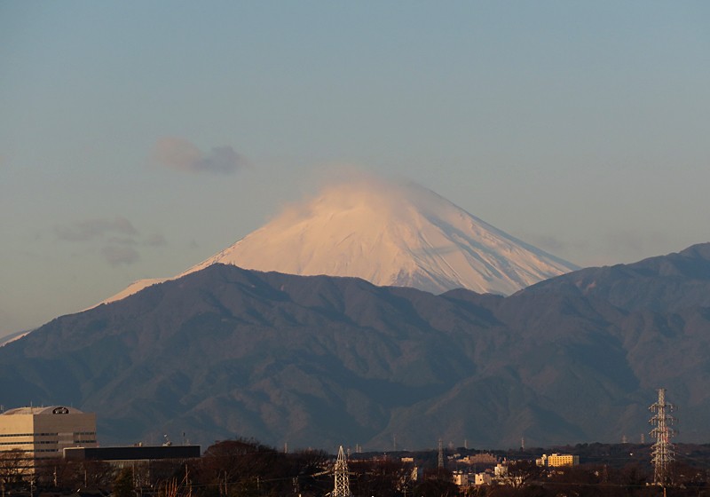 今日の画像は今朝の富士山です。昨夕、東京や神奈川は寒気による雷雲が通過したので、富士山に新たな降雪があったかもと思い、向かいの丘の上まで富士山を見に行ったけど、目立った降雪は無く、ちょっとがっかり。でも、手間の丹沢山地には僅かですが積雪があったので、少しは降った様です。