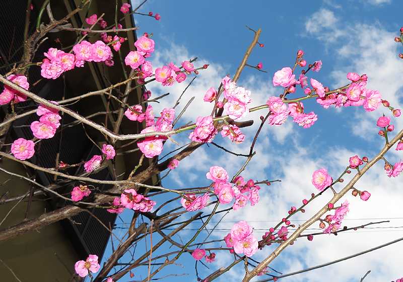 今日の画像は、紅梅です。寒梅なので、寒さが厳しい季節でも元気に咲いています。撮影したのは日中ですが、日陰だったのでフラッシュ撮影でした。