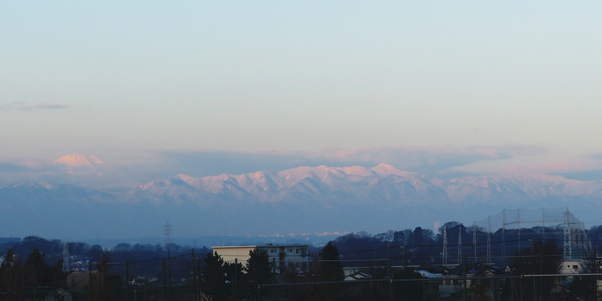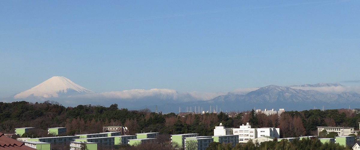 今日の画像は、今朝の富士山から丹沢山地の画像です。勤務校の4階から撮影しました。丹沢山地も降雪が目立っていました。参考に先週の土曜日に自宅近くの丘の上から撮影した富士山から丹沢山地の画像も紹介します。勤務校は自宅から北の方向なので、富士山と丹沢山地の位置関係の違いが実感できると思います。なお、土曜日の画像では富士山と丹沢山地の間、山中湖方面に低層の雲が広がっていました。