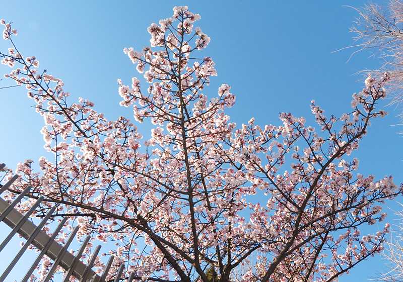 今日の画像は、寒桜です。通勤途中に生えている寒桜が満開になっています。今月初旬に咲き始めていました。時期的には河津桜が有名ですが、色が淡いので河津桜ではないでしょう。