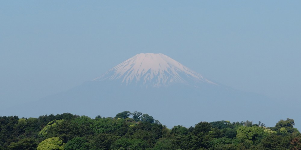 今日の画像は、今朝の富士山です。4月後半からの降雨で空の汚れが洗い流され、今朝の空は澄んでおり、富士山が見えていました。でも冬の時期ではないので低空は霞んでおり、富士山の裾野は微かに映る程度でした。富士山の積雪は少なくなっており、五合目付近には残雪は無さそうです。