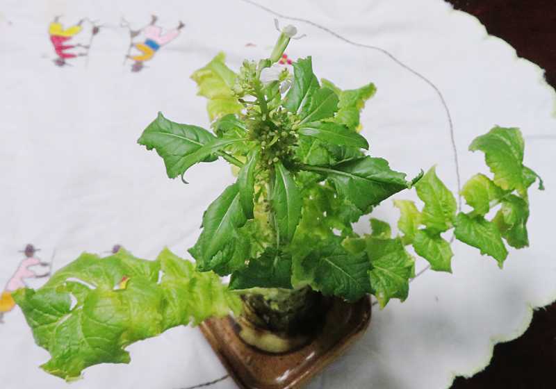 今日の画像は、大根の花です。妻が食材に使ったあとの大根を水を入れた容器に入れて置いたら、茎と葉が出てさらには、小さな白い花を咲かせました。大根の生命力にビックリです。