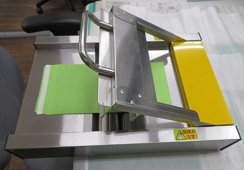 送付する資料は三つ折りにして封筒に入れるのですが、昨年までは、1枚づつ自動紙折り機で三つ折りにし、それを手で束ねて封筒にいれていました。数十万円もする自動紙折り機は、高速ですが1枚づつしか折れません。そこで今年の春に5枚重ねた状態で三つ折りが出来る手動の紙折り機を購入しました。手動ですが、折った後に束ねる必要は無く、ソーターで1部づつセットになった資料をまとめて三つ折りに出来るので便利です。価格は2万円程度なので、コストパフォーマンスは良いと感じます。