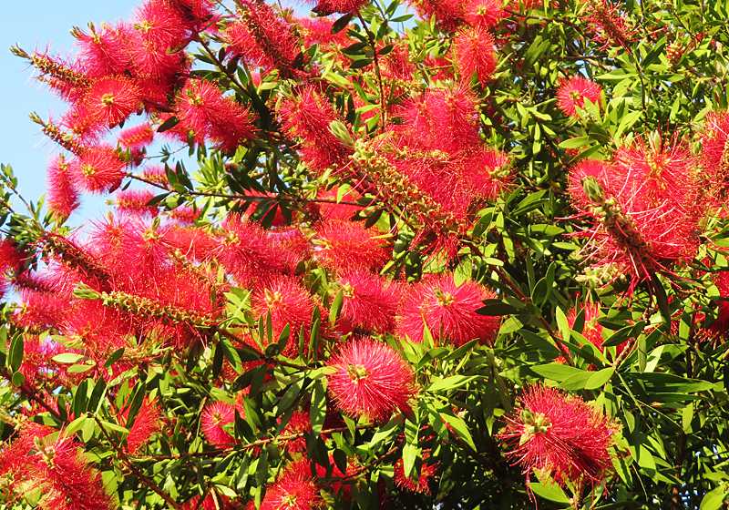 今日の画像は、ブラシの木の花です。独特な形状の真っ赤な花が満開状態で、目立っています。