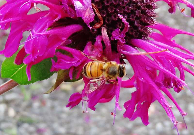 今日の画像は、小さな蜂です。今日は久しぶりに陽射しが出たので、昆虫たちも元気。ミツバチより一回り小さな蜂が花の蜜を吸っていました。